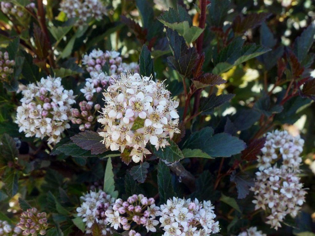 Bangita 'Donna May' Little Devil - Kis Ördög - milyen találó elnevezés erre a növényre. Kompakt és felálló növekedésű, magassága eléri a 100-125 cm-t, ugyanez vonatkozik a szélességére is. Levelei finoman texturáltak, mélybordó színűek. A virágok májusban és júniusban jelennek meg, rózsaszínes-fehér színűek.