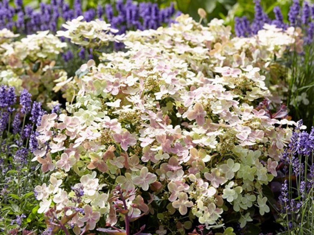 Bugás hortenzia 'Polestar' - az egyik legszebb hortenziakultúra kompakt növekedéssel. Júniustól szeptemberig virágzik. A nagy virágok fürtökben helyezkednek el, először fehérek, majd enyhén pisztáciaszínűek, végül világos rózsaszínűek. A levelek zöldek, és az őszi hónapok során lila színben ragyognak. Eléri 60 cm magasra. Ideális edénybe vagy évelőágyás részeként. Nagyon jól mutat például díszfüvekkel.