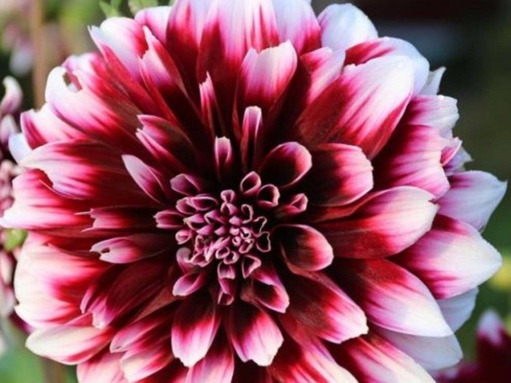 Dália 'Contraste' - eredeti, 1957-ből származó fajta. A dupla virágok mély bordó színűek, de a szirmok vége fehér. Ez egy lenyűgöző kontrasztot alkot, amely minden kertet díszít. 1 méter magasra nő. A virágok átmérője 13-20 cm. Júliustól az első fagyokig virágzik.