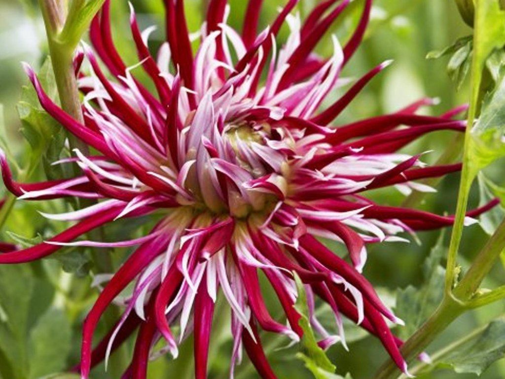 Dália 'Holly Hill Spider Woman' - ennél a dália fajtánál szokatlan és nagyon érdekes virág fogja meglepni. A szirmok első pillantásra pókot idéznek. Borgvörös színűek, amelyeket fehér árnyalatok szőnek át. Ezekbe a színekbe még egy világos rózsaszín tónus is beavatkozik. 90 cm magasra nő és vágásra alkalmas. Júliustól az első fagyokig virágzik. Ha egy kis egzotikumot szeretne az ágyásába, akkor ez a dália a világos választás.