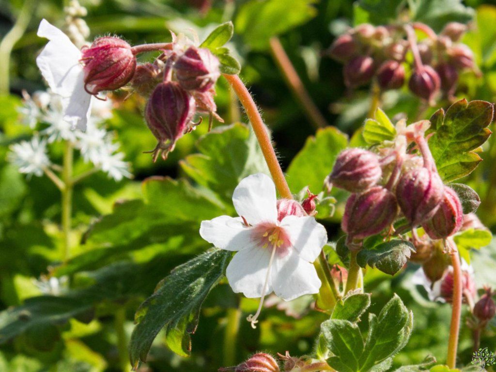 'Spessart' mocsári páfrány - évelő növény Délkelet-Európából, alkalmazkodott a köves talajokhoz, az erdőszélekhez és a szárazabb aljnövényzethez. A 'Spessart' kultivár a fajta fehér virágú változatai közé tartozik, és kedvelt a virágok tiszta árnyalata, valamint a lombozat feltűnő őszi elszíneződése miatt. Lapos, gyöktörzses növekedést hoz létre, körülbelül 25–40 cm magas, amely néhány év alatt 60–90 cm-re terjed, és olyan sűrűvé teszi a talajt, hogy a gyomoknak korlátozott terük marad. A levelek tenyeresen karéjosak, többnyire félig örökzöldek, érintésre gyökérszerűen illatoznak, és ősszel piros és bronz árnyalatokba váltanak. Május és július között jelennek meg az ötszirmú virágok, általában 2–3 cm szélesek, többnyire fehérek, feltűnően rózsaszínes csészével és finom erezettel. A virágok nektárt és pollent biztosítanak a beporzóknak, virágzás után pedig dekoratív magházak maradnak. Kerti kompozíciókban alkalmas természetes ültetvényekbe, rózsák és cserjék aláültetésére, sziklakertbe, valamint a virágágyás és az út közötti átmenetként. Szintén kiemelkedő lejtőkön, ahol stabilizálja a talajt és elviseli a szárazabb körülményeket. A növény alkalmas sziklakertbe és évelő virágágyásokba. Nagyobb területekre terjed. Gyakran használják fák vagy cserjék aljnövényzetként.