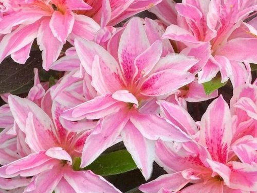 Japán azálea 'Pink Spider' - egy lassabban növő, kedvelt azálea-változat, amely inkább terjedő, kompakt bokrot képez, magassága 60-80 cm, szélessége pedig 60-100 cm, a termesztési körülményektől függően. Bőséges virágzat jelenik meg májusban, és megjelenésében eltér a többitől a hosszúkás, hegyes szirmokkal, amelyek érdekes kontrasztot alkotnak a ragyogóan rózsaszín közep és a szabálytalan fehér szegély között. A levelek hosszúkásak és sötétzöldek. Ha kemény a tél, akkor lehullanak. Ideális tavaszi szoliter elemként.