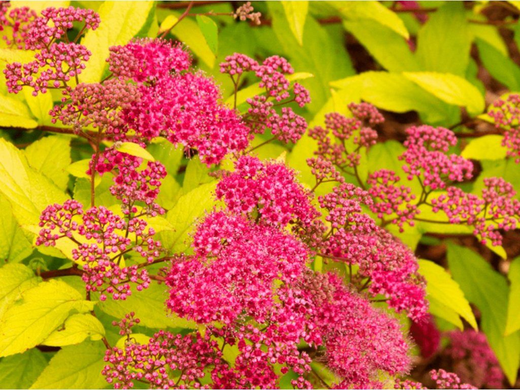 Japán gyöngyvessző 'Goldmound' - Kelet-Ázsiából származó alacsony, lombhullató cserjék közé tartozik. A 'Goldmound' fajtát kompakt növekedése és jellegzetes arany lombja miatt nemesítették, amely világos akcentusként hat a kertben, és még kisebb teret is képes megvilágítani. Sűrű, félgömb alakú cserjét alkot, magassága körülbelül 0,6–0,8 m, szélessége pedig 0,8–1 m, finoman elágazó hajtásokkal. A levelek apróbbak, tojásdad-lándzsásak, hosszuk nagyjából 2–4 cm. Tavasszal élénk sárga árnyalatban fejlődik, nyár folyamán friss sárgászöld tónusokra színeződik, ősszel pedig meleg narancssárgává válik. Júniustól augusztusig a fiatal hajtások végén lapos, néhány centiméter széles, apró rózsaszín virágokból álló sátoros virágzatok jelennek meg. Ezek pollent és nektárt biztosítanak a méheknek, poszméheknek és a kis pillangóknak, így a cserje nemcsak színt, hanem életet is hoz a kertbe. Virágzás után feltűnő, száraz toktermések képződnek, amelyek a nyár hátralévő részében is finom textúrát adnak a cserjének. Az alacsony növekedésnek köszönhetően a 'Goldmound' gyöngyvessző jól használható előkertekben, laza növésű alacsony szegélyekben, vegyes évelőágyásokban, valamint magasabb cserjék és örökzöldek alatt kisebb csoportokban. Nagyon jól érvényesül sötétlevelű fák, szürkelevelű évelők, levendulák vagy pasztellszínű rózsák kontrasztjaként. Teraszokon vagy erkélyeken lévő edényekben stabil, színes vázat alkot, amelyet szezonális virágokkal lehet kiegészíteni.