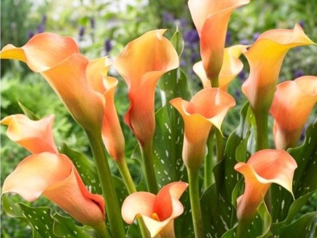 Kala 'Cameleon' - dekoratív, romantikus, felálló levelű fajta, amely kiválóan alkalmas edénybe szoliterként vagy virágágyás részeként. Keskeny virágát lazacszín és sárga színek díszítik. 40 cm magasra nő. Nyár közepétől virágzik.