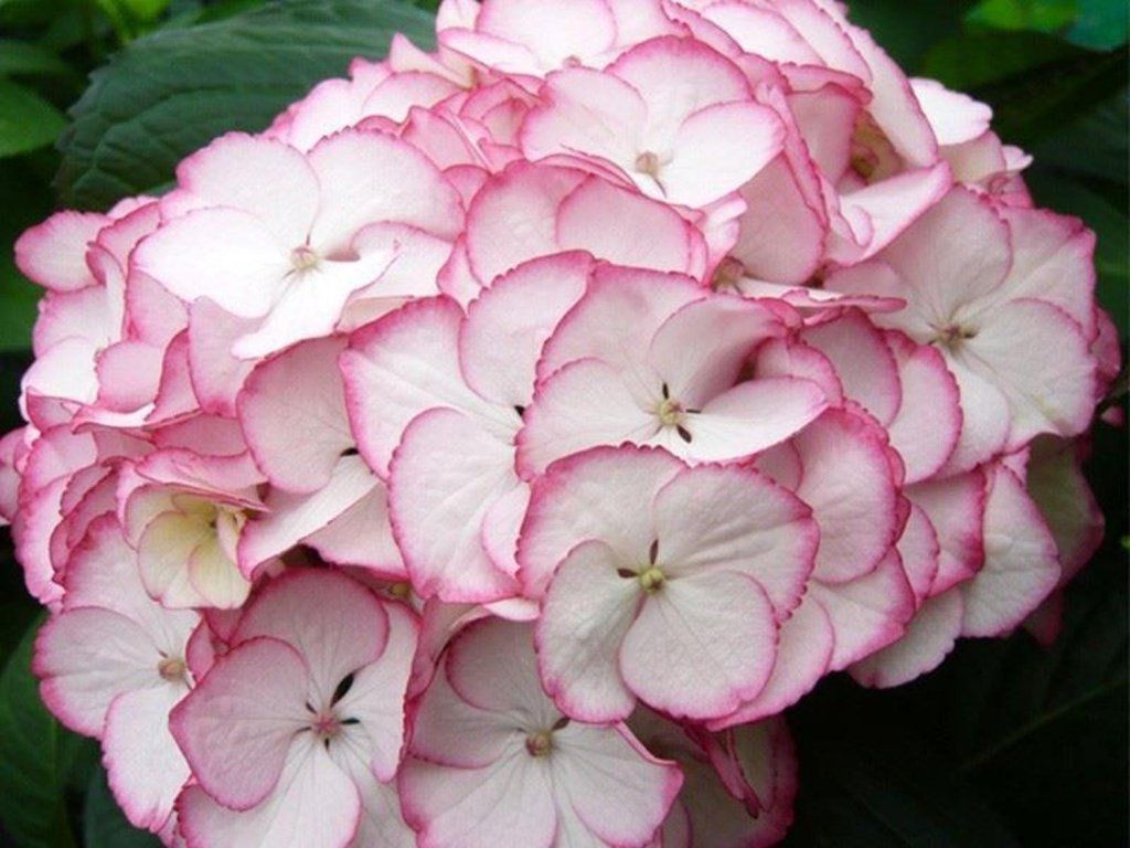 'Sabrina' nagylevelű hortenzia - az alacsonyabb nagylevelű hortenziák közé tartozik, amely Japánból származik, és Európában már régóta kertészeti díszcserjeként termesztik félárnyékba. A cserje körülbelül 1 m magasra és szélesre nő, kompakt, sűrűn elágazó habitusú és lombhullató, széles tojásdad levelekkel rendelkezik. A levelek sötétzöldek, tavasszal gyakran vöröses árnyalattal, fűrészes széllel és kifejezett erezettel, hosszuk 10 és 14 cm között mozog. A virágzat gömb alakú, apró, csillag alakú virágokkal bőségesen teli. A virágok alapszíne krémszínű vagy fehér, a szirmok szélei élénk rózsaszín vagy vörösbarna, így az összhatás kétszínűnek tűnik. A virágzás júniustól szeptemberig tart, gyakran hullámokban, és jó gondozás mellett a virágok egész nyáron megújulnak. A szín a pH-ra reagál, savasabb talajokon hidegebb rózsaszín tónus jelenhet meg, semleges környezetben melegebb vörös-rózsaszín árnyalatok fordulnak elő. A virágzat friss csokrokhoz, esetleg szárításhoz használható, kerti kompozícióban jól illik finoman színezett árnyékliliomokhoz, páfrányokhoz és árnyéktűrő füvekhez. Összességében a hortenzia népszerű eleme a kerteknek, felemelő és romantikus megjelenést kölcsönöz minden kertnek.