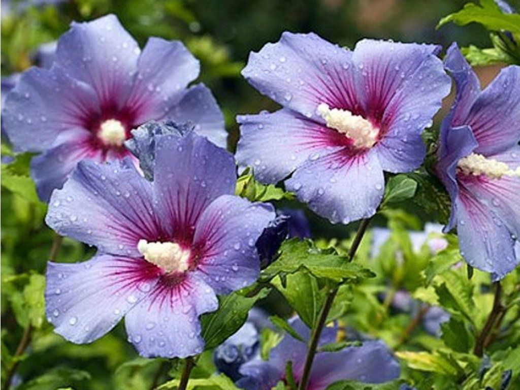 Szíriai mályva 'Marina' - a szíriai mályvák klasszikusa, amely bármilyen típusú kertet díszít. Eléri a 2-3 méteres magasságot, és nyár folyamán kezdi el virágozni levendulás lila virágokkal, sötétebb, rózsaszín középrésszel. A nap napfényt kedveli.