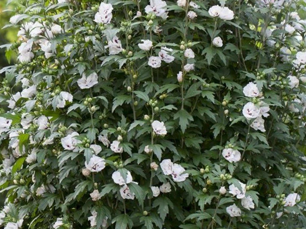 Szíriai hibiszkusz 'Speciosus' - a keleti Ázsiából származó, a 16. században már európai kertekbe is eljutott Hibiscus syriacus fajta elegáns kultivara. Felálló vagy enyhén csüngő cserjét alkot, amely hazai körülmények között körülbelül 2-3 méter magasra és 1,5-2 méter szélesre nő. A korona viszonylag keskeny, az ágakon háromkaréjos, középzöld levelek találhatók, amelyek csak a tavaszi időjárás teljes felmelegedése után jelennek meg. Júliustól szeptemberig a cserje fokozatosan, nagy, félig telt virágokkal virágzik, amelyek átmérője körülbelül 8-10 cm. A szirmok fehértől a krémszínűig terjednek, a virág torkában mélybordó vagy lila árnyalatokra színeződnek, így a virágok kétszínű benyomást keltenek. Az egyes virágok csak néhány napig maradnak a cserjén, de az állandóan fejlődő bimbók miatt a virágzás hatása egész késő nyárig tart. A 'Speciosus' jól érvényesül szoliterként az előkertben, vegyes cserjeágyásban, valamint rózsákkal és évelőkkel kombinálva. Remekül kiegészíti a kék virágú fajokat, például a levendulát vagy a macskamentát, és nyugodt, világosabb kompozíciót hoz létre, amely akkor világosítja fel a kertet, amikor a tavaszi virágok már elnyíltak.