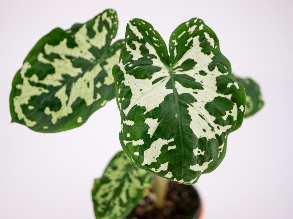 'Hilo Beauty' Alocasia - érdekes szobanövény Brazíliából. A kolokázia nagy, szív alakú levelekkel rendelkezik, amelyeket élénkzöld színűek és fehér vagy sárga foltokkal tarkítottak, ezek közvetlenül a gumókból nőnek ki. A kolokázia népszerű növények közé tartozik, egyszerű termesztésének köszönhetően. Ez az attraktív fajta nem hiányozhat egyetlen belső térből sem.