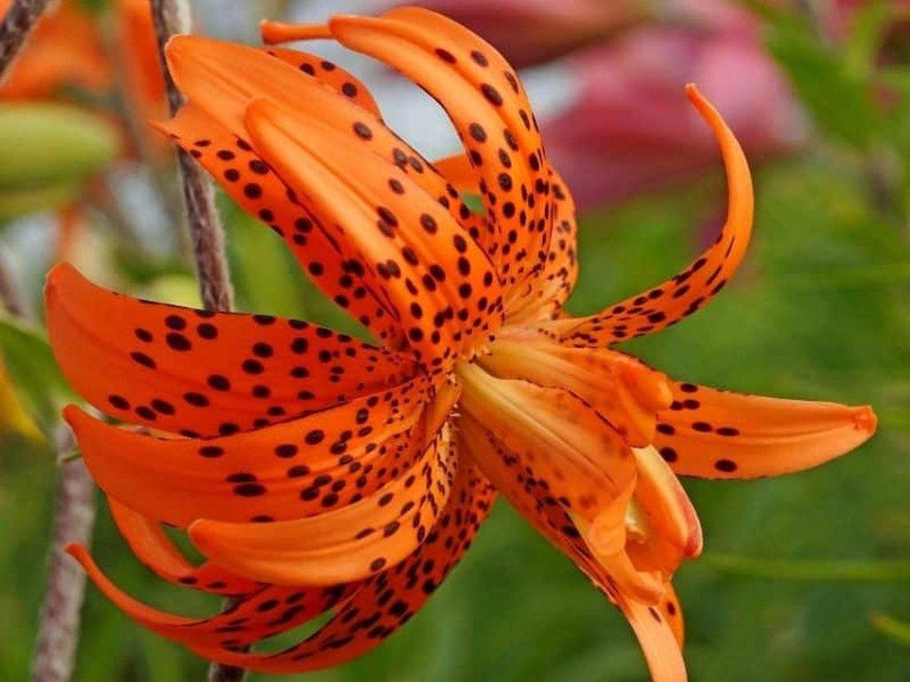 Liliom 'Flore Pleno' - narancssárga, tigriscsíkos liliom dupla szirommal, a virágok átmérője 9 cm. Ez a fajta pollenmentes, így nem hagy foltot. Augusztusban és szeptemberben kezd virágozni. 100-150 cm magasra nő. A jobb hatás érdekében csoportos telepítést ajánlunk. Vágott virágnak is alkalmas. Hosszú ideig eltartható vázában.