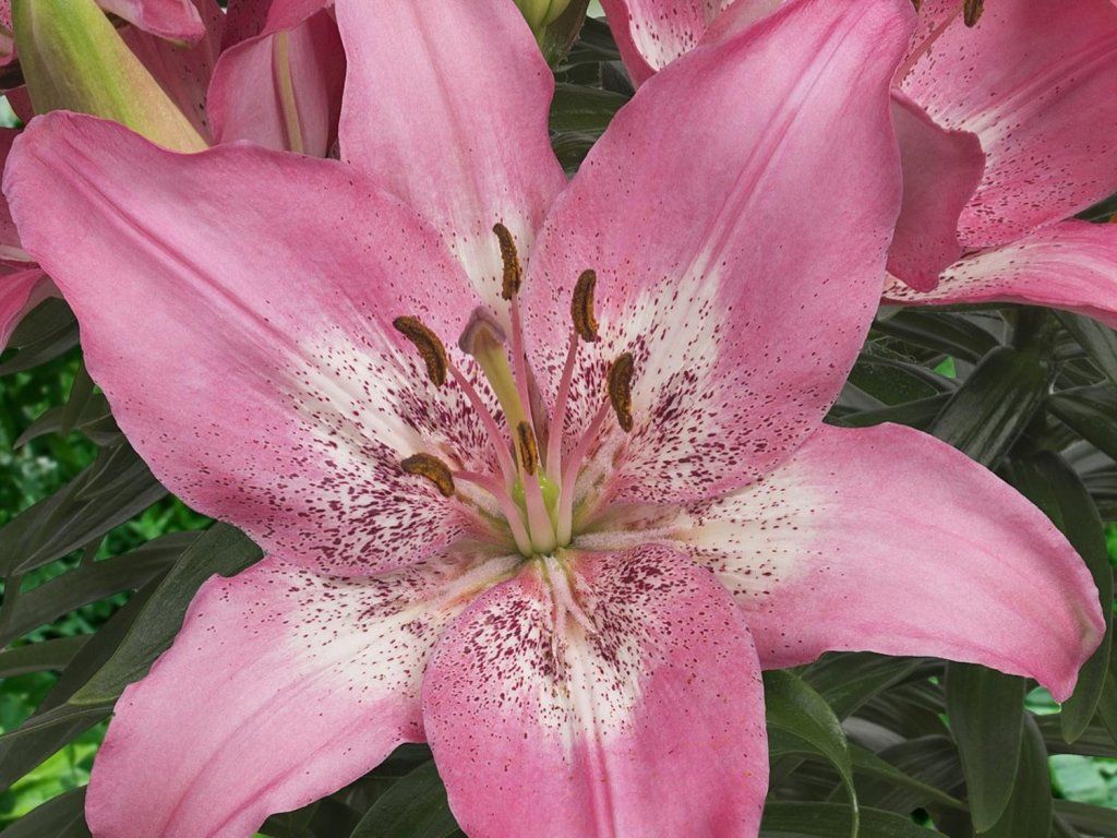 Lilie 'Trendy Nicosia' - bájos fajta, amely körülbelül 50 cm magasra nő. A virágzat büszkélkedhet teljesen nyílt, édesen rózsaszín, pontozott középpel rendelkező virágokkal, kellemes illatot áraszt. Egész nyáron díszíteni fogja a kertet. Vágásra alkalmas.