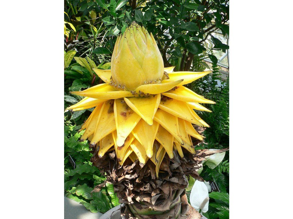 Lótuszvirágú banánpálma - Délnyugat-Kína hegyvidéki területeiről származik, különösen Jünnan tartományból, ahol lejtőkön és ritkás erdőkben, magasabb fekvésben nő. Kultúrában dísz-, banánfélékhez tartozó fajtaként termesztik, amelyet kompakt növekedése és feltűnő virágzata miatt értékelnek. Az átfedő levélhüvelyekből kúpos ál-törzset és erős, felálló, szürkészöld vagy zöld leveleket képez. Nyáron, leggyakrabban júniustól augusztustól, a szár tetején egy felálló virágzat jelenik meg viaszos, élénk sárga murvalevelekkel, amely lótuszra emlékeztet, és sok héten vagy hónapon át megtartja színét. Meleg nyarakon a virágzat fokozatosan jelenhet meg, és a kertben az egész szezon nagy részében dekoratív marad. Általában csak néhány virágzat képződik egy növényen, ezért kiválóan mutat edényben, bejáratnál, védett teraszon, vagy meleg virágágyásban, dáliák, díszfüvek vagy árnyékliliomok között. Hazai körülmények között a gyümölcsök általában nem fejlődnek ki, vagy sok magot tartalmaznak, és nem a termesztés célját képezik. A fajta készségesen sarjad, így idővel kisebb bokorrá fejlődik. De nem szabad elfelejtenünk, hogy ez egy trópusi növény, ezért hazai körülmények között legtöbb esetben konténeres növényként termesztjük. A nagy fákat ki lehet vinni a szabadba, de minőségi téli védelmet kell biztosítani. Az ideális téli elhelyezés például egy télikert.