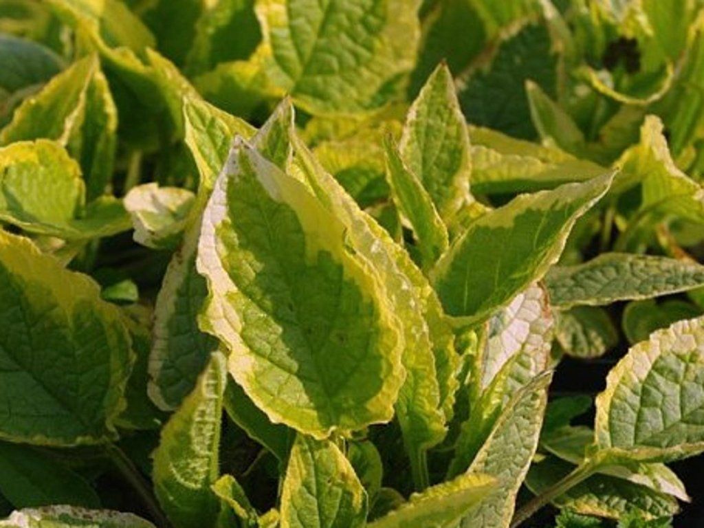 Mellőfű 'Goldsmith' - évelő növény, kb. 40 cm magasra nő. Nagyon érdekes levelei vannak. Alakjukat tekintve széles tojásdadok, friss zöld színűek, és szélükön jellegzetes krémszínű tarka mintázat található. A levelek érezhetően szőrösek. Áprilistól májusig virágzik, apró, világoskék-fehér, tölcsér alakú virágokkal. A rügyező virágok rózsaszínűek. Ideális aljnövényzet.