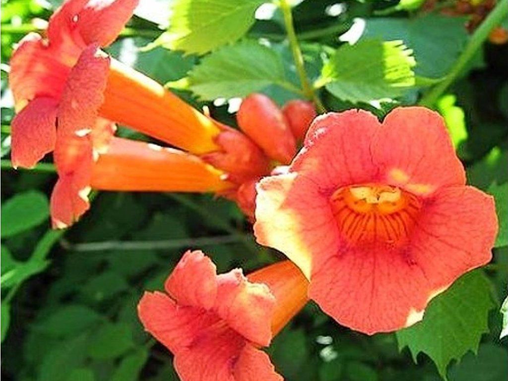 Trumpetvirág - jellegzetes, Észak-Amerikából származó kúszónövény, amely feltűnő, trombitaszerű virágairól ismert, melyek egész nyáron vonzzák a figyelmet. Virágai élénk narancssárgától a pirosig terjednek, méretük 5–8 cm, és gazdag virágzatot alkotnak a hajtások végén. Ez a trombitavirág júliustól szeptemberig virágzik, és népszerű trópusi megjelenése miatt. Gyorsan növekszik, és elérheti a 10 méteres magasságot, így ideális választás lugasok, falak, kerítések vagy pavilonok fedezésére. Léggyökerekkel kapaszkodik meg, amelyek erősen tartják magukat a felülethez. Napos és meleg helyet kedvel, ahol a legjobban virágzik, de félárnyékot is elvisel. Fagyálló, de az ültetés utáni első években érzékenyebb lehet az erősebb fagyokra, ezért érdemes védeni. A rendszeres metszés segít kordában tartani buja növekedését és serkenti a virágképződést. Összességében a trumpetvirág ideális a kertészek számára, akik egzotikus és feltűnő elemet szeretnének hozzáadni kertjükhöz.