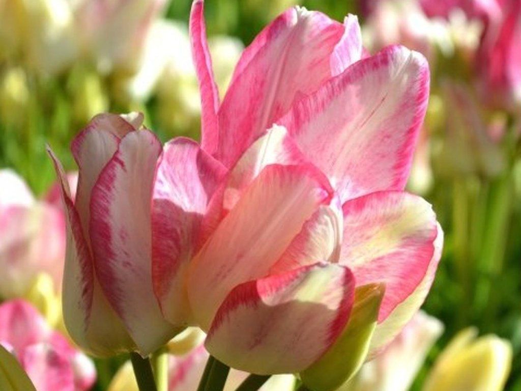 Tulipán 'Candy Club' - egy fajta, amely első pillantásra megragadja Önt. A száron 4-5 halvány bézs színű virág nő, amelyek fokozatosan kapnak egyre intenzívebb lila-rózsaszín rajzolatot. Néhány virág szegélyezett, mások csíkosak. Soha nem tudhatja, mivel lep meg! Kiválóan mutatnak önmagukban vagy fehér fajtákkal kombinálva. 40-60 cm magasra nő, szépségével áprilisban és májusban fogja elvarázsolni.