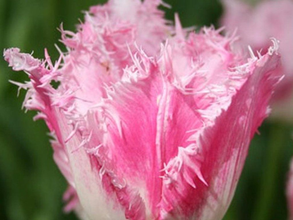 'Dallas' tulipán - ÚJDONSÁG kínálatunkban! Sötétrózsaszín, rojtos szirmokkal rendelkező tulipán, fehér szegéllyel. 45 cm magasra nő, és később, áprilistól májusig virágzik. Finom megjelenésű.