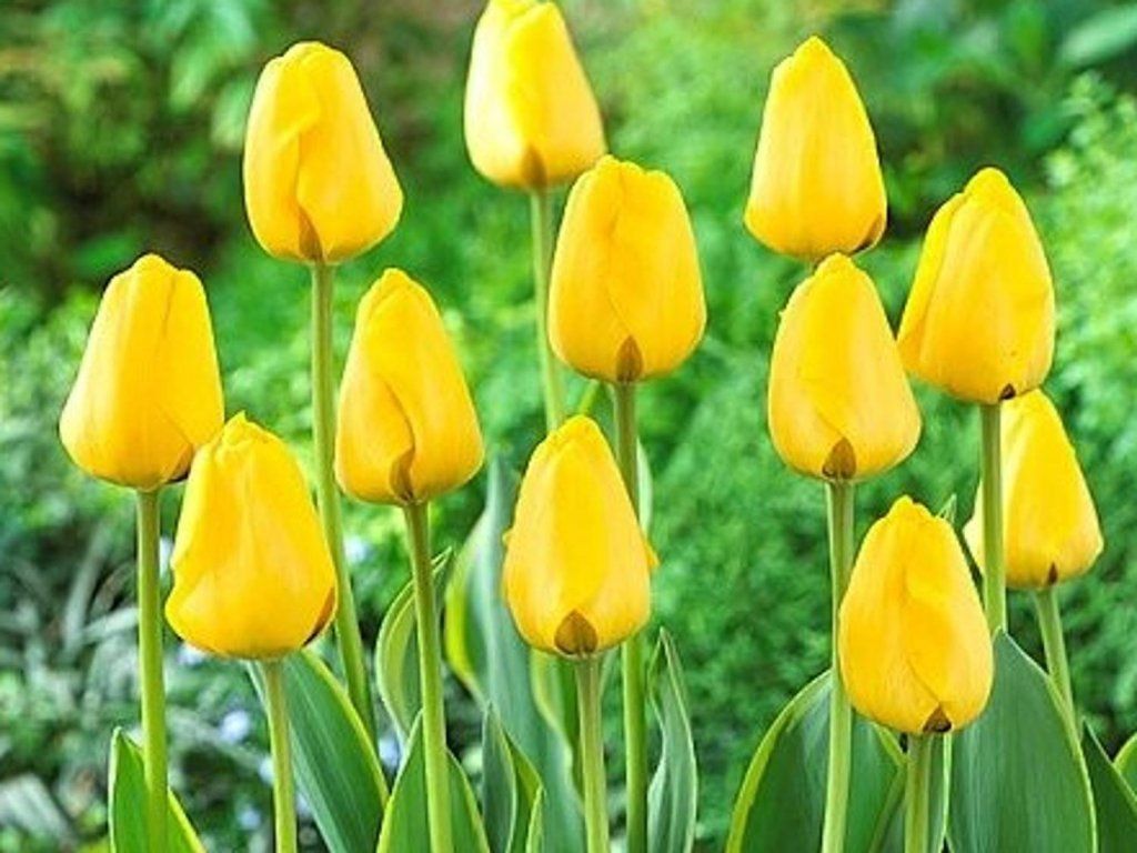 Tulipán 'Happy Design' – egy élénk sárga tulipán, amely bármilyen díszkertbe alkalmas. 55 cm magasra nő. Áprilistól virágzik.