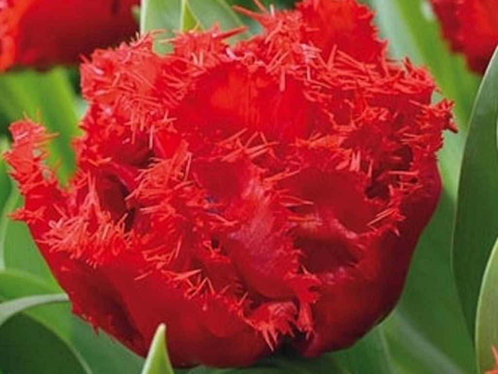 Tulipán ´Lion King´ - ÚJDONSÁG kínálatunkban! Csodálatos, bolyhos és telt virágú tulipán. A szirmok rojtosak és gyönyörű piros színűek. 50 cm magasra nő. Nem hiányozhat egyetlen virágágyásból sem.