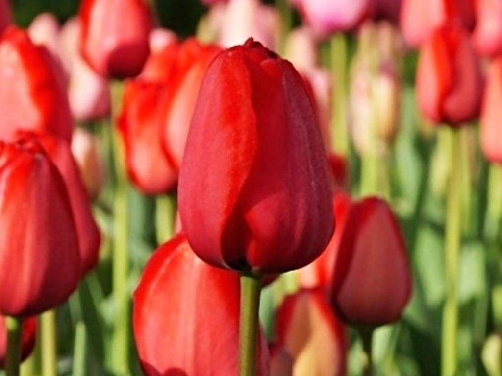 Tulipán ´Red Impression´ - tűzvörös tulipán, amely egyszerűen nem hiányozhat díszkertjéből vagy virágágyásából. 40 cm magasra nő, április és május között virágzik.