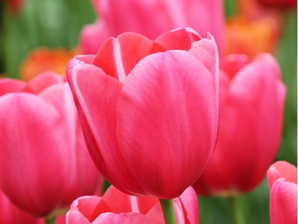 'Renown' tulipán - ÚJDONSÁG kínálatunkban! Figyelemre méltó tulipán élénk rózsaszín, tojásdad virágokkal. A szín enyhén megbolondítva barackos sárga árnyalattal. Ez a tulipánfajta 60-65 cm magasra nő.